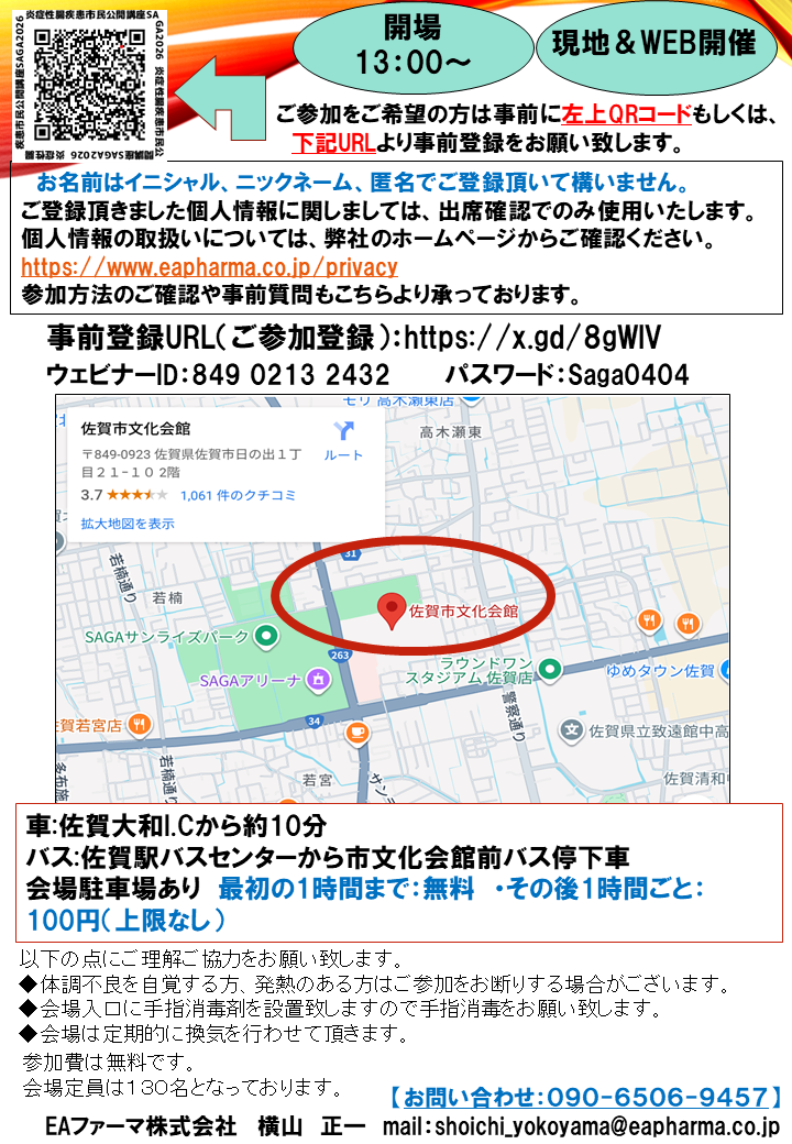 場所:佐賀市文化会館 3階大会議室 (佐賀市日の出1丁目21-10)WEB開催も行っております。