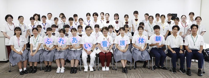 佐賀県看護協会からの依頼により、看護に興味をもつ高校生が病院を訪問し看護業務を見学・体験することにより、看護職について興味・理解を深める目的で開催しています。令和2年度から3年間は新型コロナ対策のため中止していましたが、令和5年度にWEB開催で再開し、今年度も昨年同様、対面で実施しました。